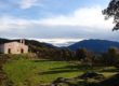 Aparecen las hayas, el hayedo; y justo cruzamos el Torrent de l’Erola, con su murmullo de agua corriendo entre las piedras y lisas rocas. Mezcla de viejos y enormes castaños con jóvenes y esbeltas hayas. Hermoso. Antes de cruzar el arroyo despreciamos un camino abandonado que sale a la derecha y sube. Miro el mapa; elegimos bien. Dejando atrás los viejos castaños llegamos a la pequeña construcción, refugio y santuario de la Mare de Déu de l’Erola. Un verde prado en uno de sus lados hace las delicias de nuestras cámaras con el frondoso fondo de las altas laderas de diferentes tonos de verde, del Montseny. Bello. Nos paramos y nos tomamos nuestro tiempo para admirar el lugar y disfrutar de la soledad y quietud de la montaña. De momento no nos hemos topado con nadie que comparta este emocionante recorrido con nosotros; y disfrutamos en soledad de lugares recónditos y como salidos de épicas escenas medievales.